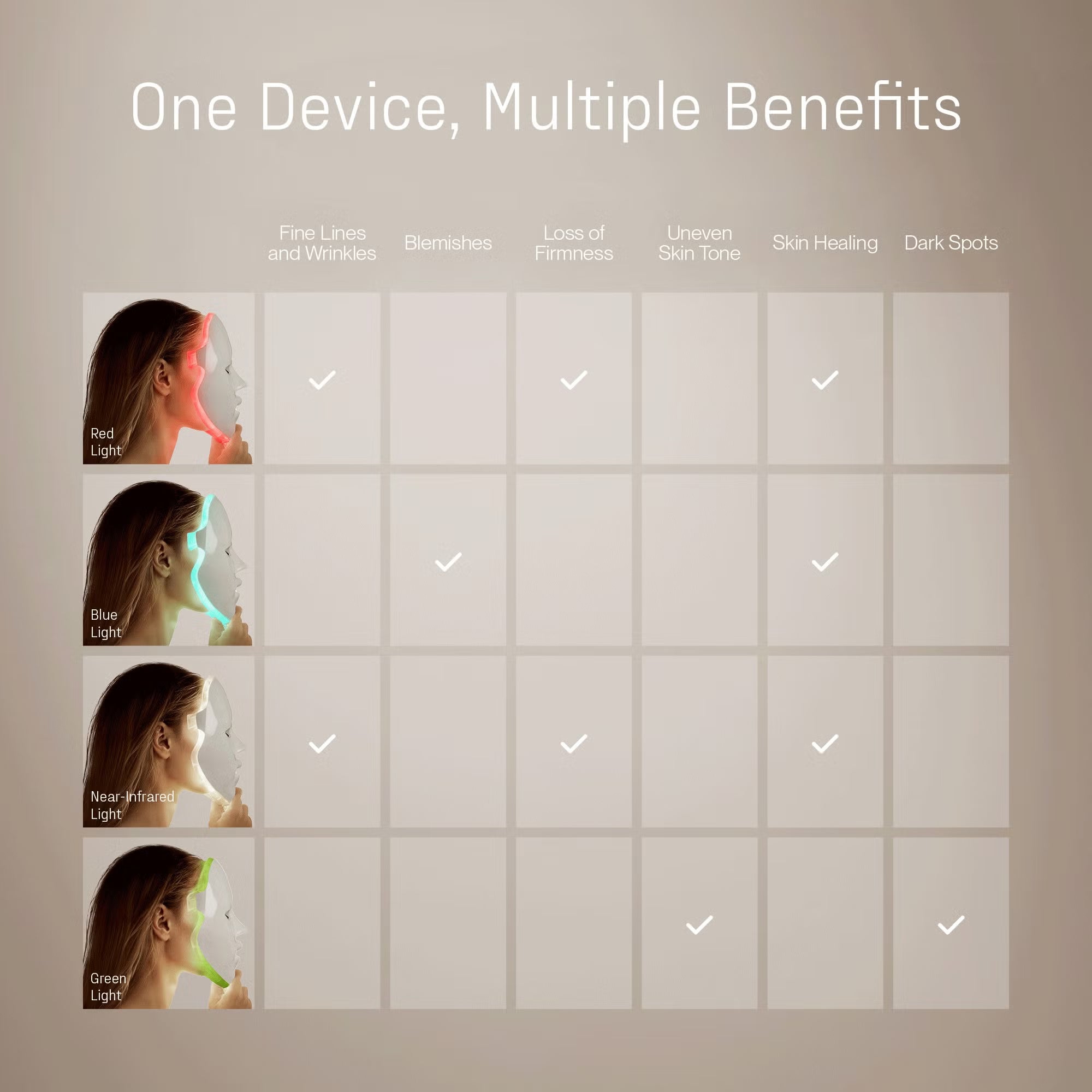 Harnessing the power of 4 clinically proven wavelengths across 6 treatment modes to deliver transformative results for all skin types and tones.