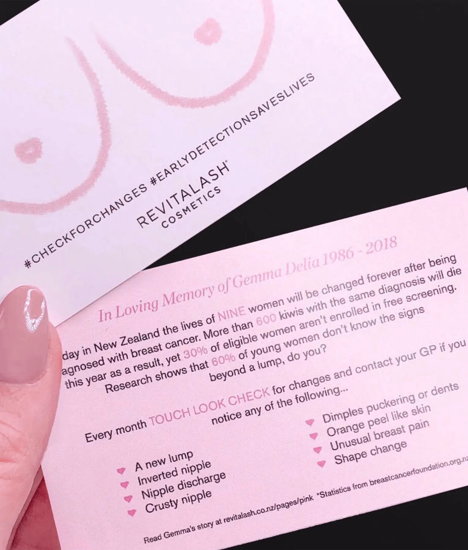 Tragically, Gemma passed away suddenly in September 2019 at the age of 32. In her memory, RevitaLash® Cosmetics New Zealand urges Kiwis to check for changes monthly and seek medical attention if something doesn’t feel right.